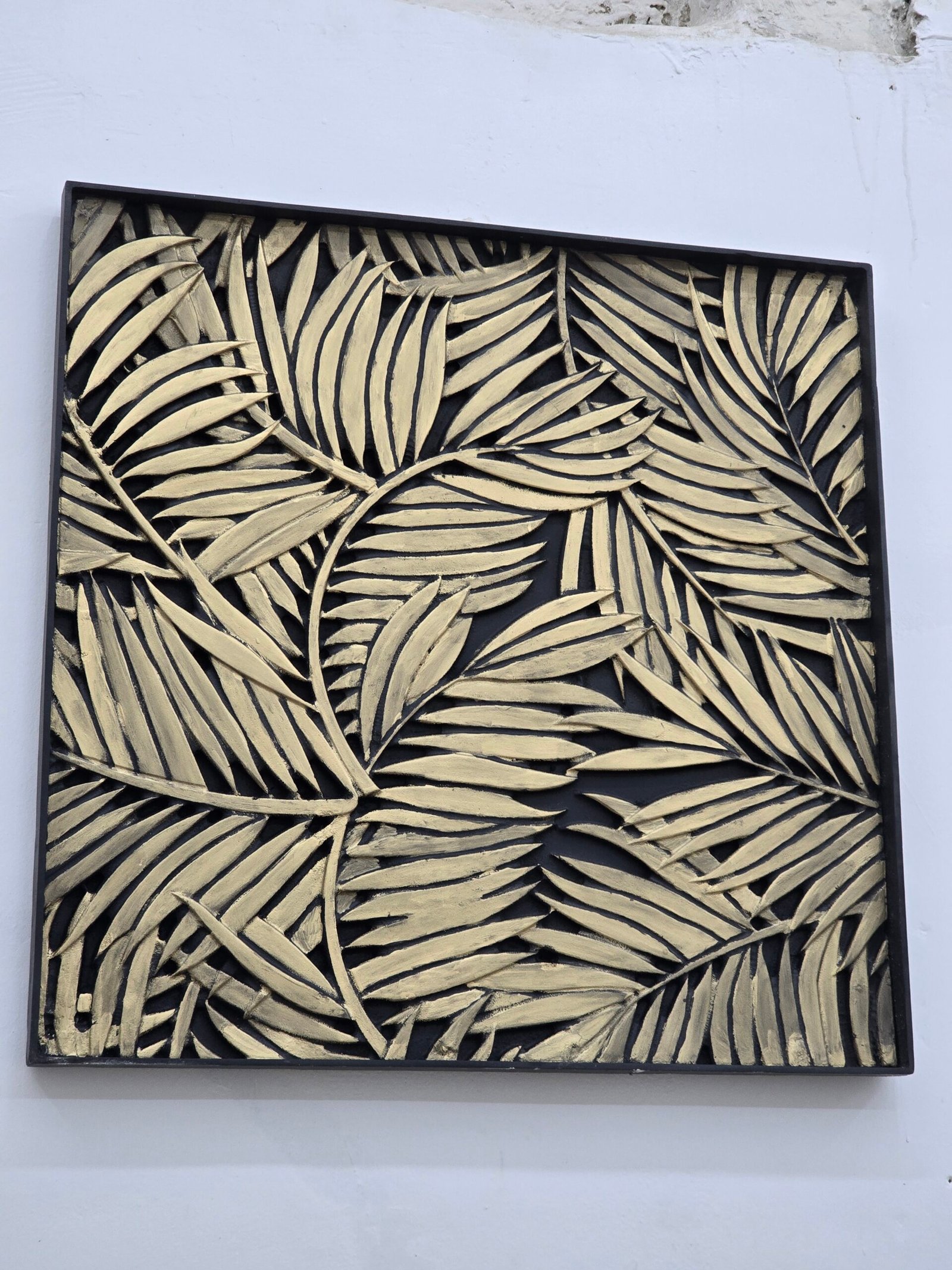 • Intricate Layered Design: Unlike traditional flat art, this mural features overlapping palm fronds sculpted in deep relief. The physical layers create real shadows, giving the piece a different look as the light in your room changes throughout the day.